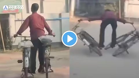 काही लोकांना स्टंट करण्याची सवय असते. उड्या मारणे, बॅक फ्लिप मारणे, सायकलवर स्टंट करणे, गाडी चालवताना स्टंट करणे असे स्टंट अनेक जण करत असतात. सध्या असाच एक व्हिडिओ सोशल मीडियावर व्हायरल झाला असून त्यामध्ये एक व्यक्ती एकाच वेळी दोन सायकल चालवताना दिसत आहे.