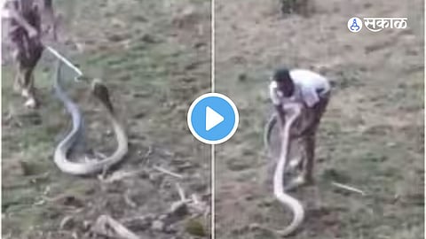 व्हायरल होत असलेल्या व्हिडिओतील कोब्रा पाहून आपल्या अंगावर काटा आल्याशिवाय राहणार नाही. त्याची लांबी आणि काढलेला फणा पाहून आपलीही घाबरगुंडी उडेल. जवळपास १० फूट लांबी आणि जाड कोब्रा हा पकडण्यासाठी सर्पमित्रालासुद्धा मोठी कसरत करावी लागली असून अनेकदा कोब्रा त्याच्यावर हल्ला करण्याचा प्रयत्न करताना या व्हिडिओमध्ये दिसत आहे.