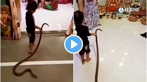 व्हायरल होत असलेल्या व्हिडिओमध्ये एका घरात चिमुकली सापासोबत खेळताना दिसत आहे. ती एका घरातून दुसऱ्या घरात सापाच्या शेवटीला धरून ओढत नेत आहे. तर घरातील इतर मंडळी तिला पाहून घाबरून पळू लागले आहेत.