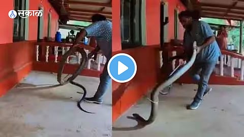 व्हायरल होत असलेल्या व्हिडिओमध्ये एक सर्पमित्र तब्बल १५ फूट लांब असलेल्या कोब्राला पकडताना दिसत आहे. याची लांबी आणि जाडी पाहून आपल्याला धक्का बसेल. हा महाकाय कोब्रा घरात शिरलेला असून सर्पमित्र त्याला पकडण्याचा प्रयत्न करत आहे.
