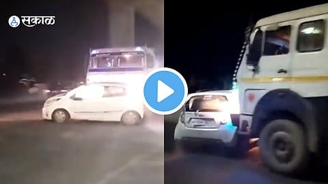मेरठ : उत्तरप्रदेशातील मेरठ येथे एका ट्रकने कारला ढकलत नेल्याची घटना घडली आहे. मद्यधुंद अवस्थेत असलेल्या ट्रक ड्रायव्हरने हे कृत्य केलं असून त्याने जवळपास तीन किलोमीटरपर्यंत ही कार झकलत नेली आहे. ही घटना कॅमेऱ्यात कैद झाली असून हा व्हिडिओ सोशल मीडियावर चांगलाच व्हायरल झाला आहे.
