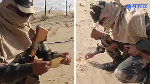सोशल मीडियावर व्हायरल होत असलेल्या व्हिडिओमध्ये दिसत आहे की, बिकानेरमध्ये ड्युटीवर असलेला एक बीएसएफ जवान तापत्या वाळूवर पापड भाजत आहे.