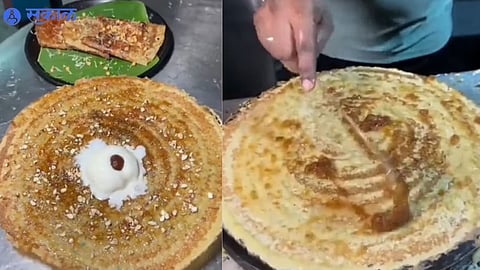 दक्षिण भारतीय खाद्यपदार्थ म्हणून डोसा देशभरात प्रसिद्ध आहे. आजकाल डोशाचे अनेक प्रकार बाजारात उपलब्ध आहेत. अनेकदा डोशावर केलेले प्रयोग खूप लोकप्रिय होतात. साधा प्लेन डोसा सोडून अनेकवेळा ते बनवण्यासाठी अवलंबलेले चित्रविचित्र कॉम्बिनेशन ही चर्चेत येते. (Viral Video : recipe gulab jamun dosa with ice cream bizarre combination viral video on social media see it)