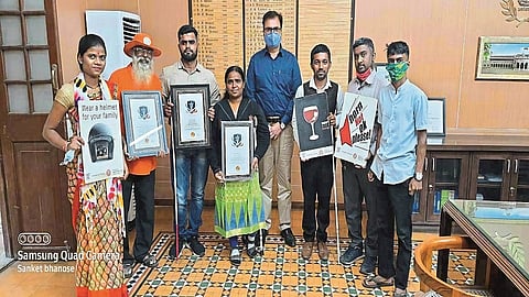 जिल्हाधिकारी मांढरे यांनी चार जागतिक विक्रमवीरांचा सन्मान केला. या वेळी संकेत भानोसे, रोहित कानडे आदी उपस्थित होते. गरुडझेप प्रतिष्ठान सामाजिक संस्था अनेक उपक्रम राबवत आपली ओळख निर्माण करत आहे. आजपर्यंत संस्थेकडे १४ जागतिक विक्रम प्रमाणपत्र जमा झाले आहेत. संस्थेचे अध्यक्ष डॉ. संदीप भानोसे यांनी वाहतूक सुरक्षा अभियान राबवून सहा जागतिक विक्रम केले. दृष्टिबाधित सागर बोडके यांच्या नावावर दोन विक्रम आहेत. दिव्यांग अंजना प्रधान हिने ११ वेळा कळसूबाई शिखर सर करून विक्रम रचला आहे.