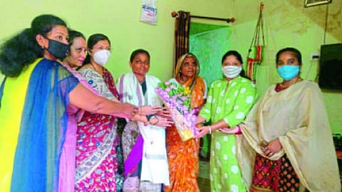 नाशिक रोड : नाशिक रोड रेल्वेस्थानकात पहिली महिला कुली म्हणून नियुक्त झाल्याबद्दल इंदूबाई वाघ यांचा भारतीय जनता पक्ष महिला आघाडीतर्फे सत्कार झाला. पांडुरंग मानकर या रेल्वेस्थानकात अनेक वर्षे कुली म्हणून काम करत होते. त्यांना वयोमानानुसार काम करणे अवघड झाले होते.