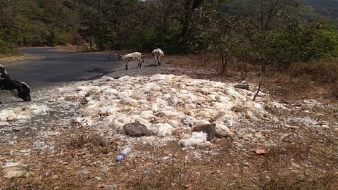नाशिक : कोरोनाने अवघ्या जगाला दहशतीखाली आणले आहे. आणि त्याच दहशतीमुळे की काय त्र्यंबकेश्वर तालुक्यातील तोरंगण घाटात एक धक्कादायक घटना घडली आहे. कोरोनोच्या भीतीने या घाटात शेकडो कोंबड्या मृत अवस्थेत आढळल्या आहेत. हा सर्व प्रकार पाहून परिसरातील नागरिक संताप व्यक्त करत आहेत.