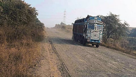 इगतपुरी (नाशिक) : सिन्नर-घोटी महामार्गावरील धामणी गावाजवळ समृद्धी महामार्गाच्या कामाच्या वाहनामुळे रस्त्यावर मोठमोठे खड्डे पडले असून, या रस्त्याची अतिशय बिकट अवस्था झाली आहे. त्रस्त वाहनचालक आणि धामणी ग्रामस्थांनी खासदार हेमंत गोडसे यांची भेट घेऊन समृद्धीमुळे रस्त्याची झालेली चाळण थांबविण्याची मागणी केली.