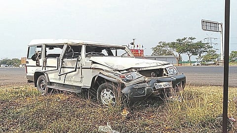 पिंपळगाव बसवंत (जि.नाशिक) : मुंबई-आग्रा महामार्गावरील शिरवाडे वणी शिवारात गुरुवारी (ता. ७) पहाटे चालकाचे नियंत्रण सुटल्याने बोलेरो सीटर (आरजे ०९, यूए ९२६१) उलटून अपघातात नऊपैकी तीन जण गंभीर, तर सहा जण किरकोळ जखमी झाले.