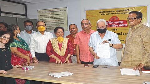 स्वागताध्यक्षांच्या नावाची घोषणा करण्यासाठी सोमवारी (ता.२५) झालेल्या पत्रकार परिषदेनंतर शिष्टमंडळाने भेट घेत माजी आमदार हेमंत टकले व जयप्रकाश जातेगावकर यांना निवेदन दिले. संस्थेचे अखिल भारतीय सहकोशप्रमुख रवींद्र बेडेकर, महानगराध्यक्षा स्वाती राजवाडे, महानगर सचिव मेघना बेडेकर, साहित्य विधीप्रमुख नीता देशकर, सहप्रमुख सोनाली तेलंग उपस्थित होत्या.
