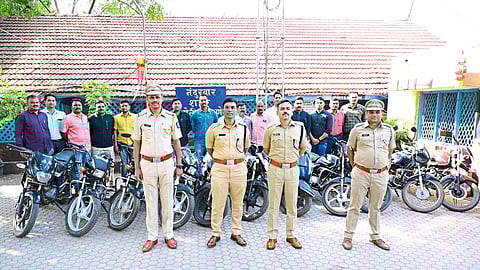नंदुरबार : शहर व परिसरातून चोरीस गेलेल्या मोटारसायकलींचा तपास करताना तब्बल सहा लाख ७० हजार रुपये किमतीच्या ११ मोटारसायकली नंदुरबार शहर पोलिस ठाण्याच्या तपास पथकास गवसल्या आहेत. कसून चौकशी केल्यावर मोटारसायकल चोरी करणारी मोठी टोळी उघडकीस आली आहे. या टोळीकडून मोटारसायकली हस्तगत करण्यात नंदुरबार शहर पोलिस ठाण्याच्या पथकाला यश आले आहे. (11 motorcycles worth 7 lakhs seized Both were arrested Nandurbar Crime News)