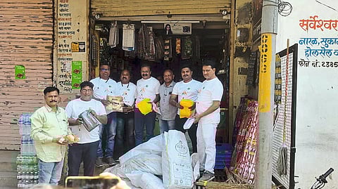 छोटा हत्ती वाहन भरून या पिशव्या असल्याचे सांगण्यात आले. साधारण एक लाख रुपये किमतीचा हा साठा आहे. या प्रकरणी संबंधित दुकानदाराला २५ हजार रुपये दंड करण्यात आला.