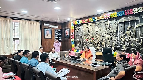 धुळे शहरातील पाणीपुरवठा वितरण वाहिनीवरील गळत्यांबाबत महापौर श्रीमती चौधरी यांनी मंगळवारी (ता. २८) महापालिकेतील आपल्या दालनात आढावा बैठक घेतली. महिला व बालकल्याण समिती सभापती सारिका अग्रवाल, नगरसेवक साबीर शेठ, वसीम अन्सारी, उपायुक्त विजय सनेर, अभियंता कैलास शिंदे, मुख्य लेखाधिकारी गजानन पाटील,