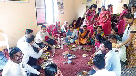 जिल्हा परिषदेच्या महिला व बालकल्याण समिती सभापती श्रीमती देवरे, जिल्हाधिकारी श्री. शर्मा, जिल्हा परिषदेच्या मुख्य कार्यकारी अधिकारी भुवनेश्वरी एस., उपमुख्य कार्यकारी अधिकारी हेमंत भदाणे, जिल्हा आरोग्याधिकारी डॉ. संतोष नवले, सरपंच दादाजी मोरे, उपसरपंच जी. जी. पाटील, ग्रामपंचायत सदस्य, अंगणवाडी पर्यवेक्षिका, अंगणवाडी सेविका, मदतनीस, गरोदर व स्तनदा माता व त्यांचे कुटुंबीय या उपक्रमात सहभागी झाले. सर्व पदाधिकाऱ्यांनी स्वतः डबा आणून येथे सहभोजनाचा आनंद घेतला.