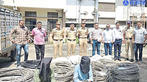 धुळे ः दोंडाईचा (ता. शिंदखेडा) आणि शहादा (जि. नंदुरबार) येथे वीज महावितरण कंपनीच्या अॅल्युमिनियमच्या तारा चोरी करणाऱ्या टोळीला येथील एलसीबीच्या पथकाने शिताफीने गजाआड केले. शहादा तालुक्यातील तिघांकडून सुमारे दहा लाख ३० हजारांचा मुद्देमाल जप्त करीत दहा गुन्ह्यांची उकल करण्यात पोलिसांना यश आले. दोंडाईचा क्षेत्रातील रामी- पथारे रस्त्यावरील पाणीबाईनगरातील वखार महामंडळाजवळ महावितरण कंपनीचे दोन लोखंडी पोल व सिंगल फेज वायर चोरट्यांनी नेली. २० जुलैला सकाळी अकरापूर्वी ही चोरी झाली. याबाबत सहाय्यक अभियंता विवेक चौधरी यांच्या तक्रारीवरून दोंडाईचा पोलिस ठाण्यात गुन्हा दाखल झाला. (Wire stealing gang arrested with seizes 10 lakh worth of goods )
