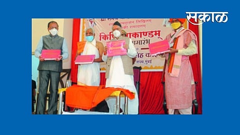 राज्यपाल कोश्यारी यांच्या हस्ते रामायण संशोधन प्रकल्पात योगदान देणारे न्या. अंबादास जोशी, डॉ. अरुंधती जोशी (पुणे), डॉ. रुपाली कपडे (संगमनेर), डॉ. शोभा शिंदे (धुळे), चित्रकार वासुदेव कामत (मुंबई), बाळू बुवा रामदासी, हर्षवर्धन कुळकर्णी (सातारा), डॉ. निलेश जोशी- वैशंपायन (बनारस विद्यापीठ) सत्कार झाला.