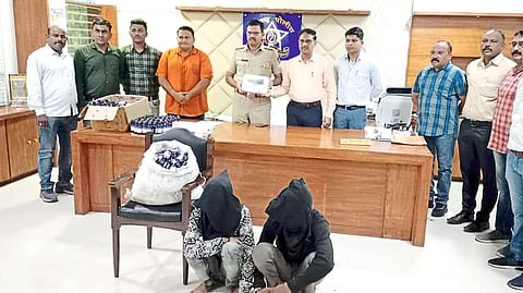 तौसिफ शाह सलीम शाह (वय २४, रा. ८० फुटी रोड, रमजानबाबा नगर, धुळे), अतुल कन्हय्यालाल राणे (वय २३, रा. गांधी नगर, श्रीनाथ सोसायटी, सुरत, गुजरात) दुचाकीने (एमएच ३९ आरडी १९३९) गुंगीकारक औषधाच्या बाटल्यांची चोरटी विक्री करण्याच्या उद्देशाने महापालिका, शिवाजी हायस्कूल परिसरात हिंडत असल्याची माहिती एलसीबीचे पोलिस निरीक्षक हेमंत पाटील यांना मिळाली.