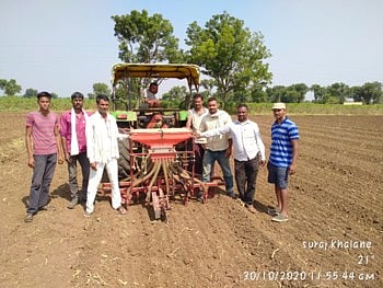 मोठ्या बागायतदार शेतकऱ्यांची दिवसात चांगल्या प्रमाणात पेरणी होत असते. ट्रॅक्टरच्या मागील भागास हे यंत्र बसविले जाते. या यंत्राच्यावरील भागास एक आयताकृती डब्बा असतो कांद्याचे बीज यात टाकले जाते. फक्त ट्रॅक्टर चालकाच्या सहाय्याने कांदा पिकाची पेरणी केली जाते. यावेळी येथील शेतकरी राजेंद्र निकुंभे, विलास महाजन, पिंटू जाधव, शशिकांत जाधव आदी उपस्थित होते.