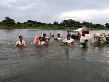 धामणगाव (धुळे) : विकसनशील जिल्ह्याचा बोलबाला असला तरी धामणगाव (ता. धुळे) येथील ग्रामस्थांना पुल नसल्याने शेतीसाठी अक्षरशः रोज नदीतून जीवघेणा प्रवास करावा लागत आहे. नदीच्या दुसऱ्या काठाकडे ७० टक्के शेती क्षेत्र असल्याने जीव मुठीत घेऊन ग्रामस्थ कामासाठी जातात. केवळ गटातटाच्या राजकारणामुळे धामणगावची पुलाची समस्या सुटत नसल्याने रोष व्यक्त होतो. या स्थितीकडे दुर्लक्ष करणाऱ्या नेते, अधिकाऱ्यांची संवेदना केव्हा जागृत होईल हा प्रश्न आहे.