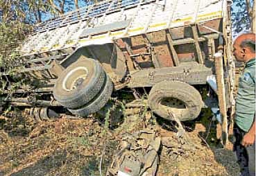 पिंपळनेरहून गुजरातकडे सागवान लाकूड घेऊन जाणारा आयशर ट्रक (जीजे19/एक्स8383) आज सकाळी साडेआठच्या सुमारास पानखेडा (ता. साक्री) येथील चिंचपाडा फाट्याजवळ आला असता समोरून येणाऱ्या मिथुनच्या स्कूटीला (एमएच48/बीबी1857) वळणावर आयशरने जोरदार धडक दिली. अपघात एवढा भीषण होता, की धडकेनंतर लाकडांचा ट्रक थेट झाडावर जाऊन आदळला. यात स्कूटीही फरफटत नेली. स्कूटीचे अक्षरशः तुकडे झाले. यात मिथुन पवारचा जागीच मृत्यू झाला, तर आयशरचालक राजेंद्र अमृत पाटील (वय 21, रा. धार मालपूर, ता. अमळनेर) याचे दोन्ही हात, पाय फ्रॅक्चर झाले. सहचालक विजय मोहन राठोड (वय 25, रा. गुजरात) हा गंभीर जखमी झाला. जखमींना धुळे येथील शासकीय रुग्णालयात हलविण्यात आले.