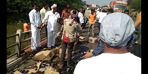 अपघातस्थळावर अनेकांची गर्दी झाली होती. नागरिकांसह रस्त्यावरून जाणाऱ्या वाहनधारकांनी दारूचे बॉक्स, बाटल्यांसह काचेचे ग्लास, वाट्या असा लाखोंचा माल वाहुन नेला. दारूच्या बाटल्या घेण्यासाठी अनेकांची झुंबड उडाली होती. दरम्यान अपघातानंतर महामार्गावरील वाहतूक ठप्प झाली होती. सुमारे दोन ते तीन कि.मी अंतरापर्यंत वाहनांच्या रांगा लागल्या होत्या. अपघातानंतर अनेक बॉक्समधील बाटल्या फुटून लाखोंचे नुकसान झाले आहे.