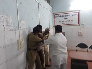 लकडीया आसाराम पावरा (वय-23) ऊर्फ लकड्या हा कैदी खुनाच्या गुन्ह्यात न्यायालयीन कोठडीत आहे. त्याला उपचारासाठी रविवारी सकाळी (11.15 वाजता) पोलिस जमादार राजेश रघुनाथ पाटील (वय-56) तसेच कर्मचारी शेख सलीम करीम शेख (वय-51) यांनी कारागृहातून जिल्हा रुग्णालयात आणले. केस पेपर काढल्यानंतर तपासणीसाठी डॉक्टरांच्या केबिनमध्ये लकड्याला नेण्यात आले. त्याठिकाणी अचानक लकड्याने किंकाळ्या मारतच त्याच्या अंगावरील सर्व कपडे फाडले. त्यानंतर त्याने हातवर करत हातातील बेडी गरागर फिरवू लागला. यामुळे डॉक्टर घाबरून केबिनच्या बाहेर पळाले. तर शेख करीम तसेच राजेश पाटील यांनी त्याला शांत करण्याचा प्रयत्न केला. मात्र, "सिंगल हड्डी' लकड्या पावरा कोणालाही जुमानत नव्हता.