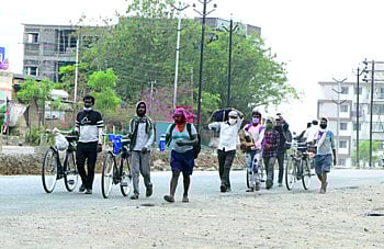 मुंबई येथून एका स्टील कंपनीत कामाला असलेल्या दहा तरुणांनी दहा दिवस मुंबईहून पायी प्रवास करत धुळे शहर गाठले. तेथून त्यांनी सायकल दुकानदाराकडून नवीन सायकली विकत घेतल्या. रात्रंदिवस सायकल चालवून आपल्या मूळ गावी जाण्यासाठी निघालेल्या तरुणांना आता मात्र आपल्या घरचा ओढा लागला आहे.