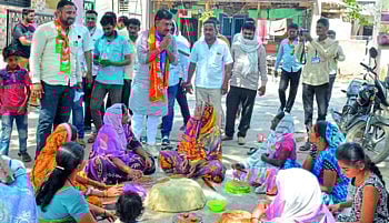 सकाळी पावणेसातच्या सुमारास लाल रंगाचा कुर्ता, पांढरा पायजमा, गळ्यात भाजप- शिवसेना व ‘आरपीआय’चे रुमाल टाकून ते बैठकीस आले. घरी आलेल्या पदाधिकारी व कार्यकर्त्यांशी चर्चा करून दिवसभरातील नियोजनासंदर्भात जाणून घेऊन अल्पसा नाश्ता व ताक घेऊन ते आपल्या निवडक सहकाऱ्यांसह गाडीत बसले.