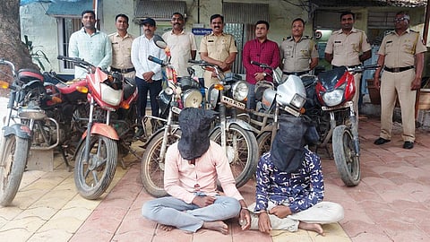 विंचूर चौफुली परिसरात नाकाबंदी सुरू असताना दोघे संशयित दुचाकी घेऊन जात असताना पोलिसांच्या निदर्शनास आले. पोलिसांनी सिनेस्टाईल पाठलाग करून त्यांना ताब्यात घेतले. चौकशी केली असता त्यांनी येवला शहर व चांदवड परिसरात दुचाकी चोरी केल्याची कबुली दिली. (2 bike thieves arrested 5 bikes seized Nashik Latest Crime News)