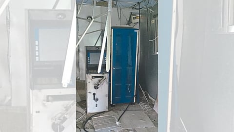 एटीएम रूमच्या दर्शनी दरवाजाच्या काचा फुटल्या होत्या. सिलिंगदेखील खाली आले होते. या ठिकाणी ताईत जोडण्यासाठी वापरण्यात येणाऱ्या वायरचे तुकडेही आढळून आले.