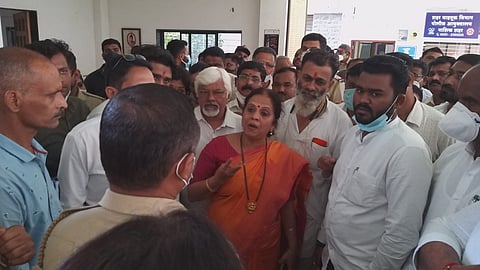 नाशिक : आक्षेपार्ह बोलले म्हणून पोलिसांनी केंद्रीय मंत्री नारायण राणे (Narayan Rane) यांच्यावर गुन्हा दाखल केला. त्याच न्यायाने आक्षेपार्ह लिखान छापून शहरभर होर्डिंग लावल्याबद्दल सामनाचे संपादक संजय राऊत (Sanjay Raut) यांच्यावर पोलिसांनी गुन्हा दाखल करावा. अशी मागणी करीत आमदार प्रा. देवयानी फरांदे, ॲड राहूल ढिकले यांच्या नेतृत्वाखाली भाजप पदाधिकाऱ्यांनी पोलिस आयुक्तांना निवेदन दिले.