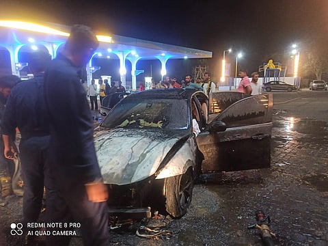 शुक्रवारी रात्री सव्वा नऊ ते साडे नऊ वाजेच्या सुमारास पिंपळगांव बसवंत येथुन नाशिककडे जात असलेल्या बी एम डब्लू कारने (एमएच 43 ए ए 9007) इंधन भरण्यासाठी सर्व्हिस रोडवरील भारत पेट्रोलियमच्या पंपावर प्रवेश केला असता या कारच्या पुढील बाजूने धूर येत असल्याचे व इंजिनखाली आग लागल्याचे पेट्रोल पंप मालक व कर्मचाऱ्यांच्या निदर्शनास आले तेंव्हा पेट्रोल पंपावरील कर्मचारी हिरामण वालझाडे यांनी क्षणाचाही विलंब न लावता कारचालकास कार पुढे घेऊन जाण्यास सांगून पंपासमोर बाजूला थांबवली दरम्यान घटनेची माहिती पोलिसांना मिळाली असता त्यांनी एच ए एल अग्निशामक दलास पाचारण केले एच ए एलअग्निशामक दलाचे कर्मचारी व बंब पोहचेपर्यंत कारने पेट घेतला व आगीने रौद्ररूप धारण केले होते.