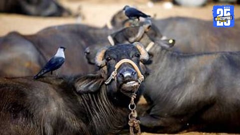 म्हशीने आपल्या मालकिणीवर हल्ला करणाऱ्या तरसाला ठोकरून ठार केलं...