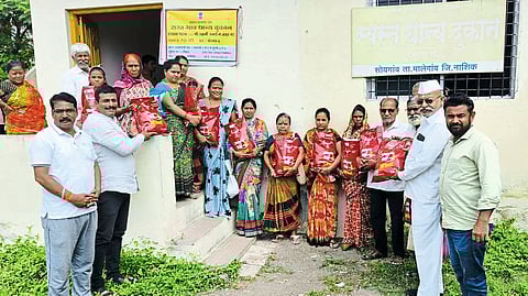 पालकमंत्री दादा भुसे यांनी शहर व तालुक्यातील स्वस्त धान्य दुकानातून वाटप करण्यात येणाऱ्या वस्तुंचा आढावा घेतला. लाभार्थ्यांना वस्तु वेळेवर वितरीत करण्याच्या सूचना अधिकाऱ्यांना दिल्या. शहरात ४३ हजारापेक्षा अधिक तर ग्रामीण भागात ७५ हजारापेक्षा अधिक लाभार्थ्यांना शंभर रुपयात शिधा मिळणार आहे.