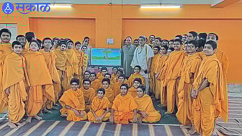 या वेळी पंचवटीतील पेठ रोडवरील कैलास मठामध्ये देशभरातील शेकडो विद्यार्थी वेद शिक्षणाचे धडे गिरवत आहेत. वेद शिक्षणाचे धडे घेणाऱ्या विद्यार्थ्यांना ई-लर्निंग संचाच्या माध्यमातून शैक्षणिक धडे गिरविता यावे, याकरिता या विद्यार्थ्यांसाठी ई-लर्निंग संच देण्यात आला. (E Learning package to 6 schools organized by Sakal Social Foundation nashik news)