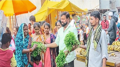 मनमाड : शेतकऱ्यांनी पिकवलेला भाजीपाला कवडीमोल भावाने विकला जात असताना मनमाडमध्ये दिलीप सांगळे या शेतकऱ्याने बाजार समितीत विक्रीसाठी आणलेल्या कोथिंबीरला व्यापारी घ्यायला तयार नसल्याने, त्यांनी नाराज होऊन रस्त्यावर ओरडून ओरडून कोथिंबीर चक्क फुकट वाटली.