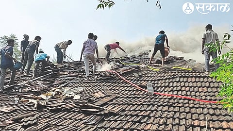 मात्र, आगीत घरातील संसारपयोगी साहित्य, कापणी करून काढलेले भात, बी बियाणे, सागवान कौलारु लाकडी घर आगीच्या भक्ष्यस्थानी पडले. आगीत घराचे मोठे नुकसान झाले आहे.