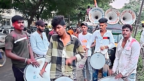 जुने नाशिक : यंदा निर्बंधमुक्त गणेशोत्सवाने (Ganeshotsav) वाद्यांचे आणि वादकांचे विघ्न हटले आहे. तब्बल दोन वर्षानंतर संपूर्ण जगात प्रसिद्ध असलेल्या नाशिक ढोल, डोली बाजा यासह अन्य वाद्यांचा दणदणाट बुधवारी (ता. ३१) सर्वांना अनुभवास मिळाला.