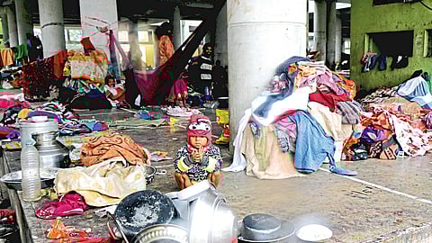 सध्या या मंडईच्या अर्ध्या भागात भाजीविक्रेते बसतात, तर निम्या जागेत हे बेघर आश्रयाला आले आहेत. यात वृद्ध, महिला, लहान मुले यांची संख्या मोठी आहे. यातील अनेकजण परिसरातच प्रार्तविधीला जात असल्याने मंडईत दुर्गंधी पसरली आहे.