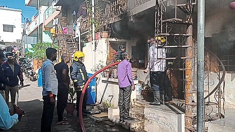 दुपारच्या अचानक काहीतरी जळण्याचा वास येत धूर येत असल्याचे जाणवताच घरा शेजारील सामाजिक कार्यकर्ते दिनकर शिरसाठ यांच्या समोरचे दृष्य पाहून शिरसाठ यांनी तत्काळ अग्निशामन विभागाला फोन केला.
