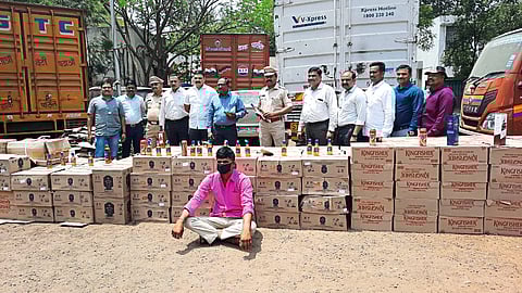 राज्यात बंदी असलेला मद्यसाठा (Alcohol stock) धुळ्याच्या दिशेने जात आहे, अशी माहिती राज्य उत्पादन शुल्क विभागास मिळाली. सोमवारी (ता. १०) सकाळी नाशिक विभागाचे उपायुक्त अर्जुन ओहोळ, अधीक्षक डॉ. मनोहर अंचूळे यांच्या मार्गदर्शनाखाली भरारी पथकाचे निरीक्षक ए. एस. चव्हाण, दुय्यम निरीक्षक ए. जी. सराफ, व्ही. एस. कौसडीकर, वाय. एम. चव्हाण, जे. एस. जाखेरे, कर्मचारी गोकुळ शिंदे, विठ्ठल हाके, भाऊसाहेब घुले, लोकेश गायकवाड, युवराज रतवेकर यांच्याकडून द्वारका परिसरात सापळा लावण्यात आला. संशयितरीत्या धुळेच्या दिशेने जाणारी ट्रक (एमएच- ४८- डी- १६२८) चालकास पथकाने थांबवून तपासणी केली. त्यात विविध ब्रॅण्डचा मद्यसाठा मिळून आला. पथकाने कारवाई करत सुमारे १४ लाखांचा मद्यसाठा आणि १० लाख किमतीचा ट्रक, असा सुमारे चोवीस लाखांचा साठा जप्त केला.