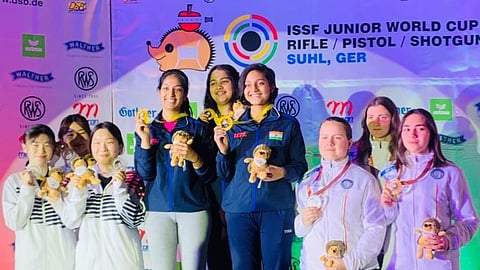 नाशिक : जर्मनी (Germany) (सूल) येथे आयोजित ज्युनिअर वर्ल्ड कप २०२२ स्पर्धेत भारताच्या वतीने आर्या राजेंद्र बोरसे, जिना किटा व रमिता या खेळाडूंचा संघाने अव्वल गुण प्राप्त करून फायनलमध्ये प्रवेश मिळविला. शुक्रवारी (ता.१३) झालेल्या फायनल स्पर्धेमध्ये सुवर्ण पदक पटकाविले. स्पर्धेत कोरिया रजत तर नॉर्वेच्या संघाने कास्य पदक पटकाविले.