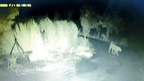 बार्डे, गोसराणे (ता.कळवण) परिसरातील बिबट्याच्या मुक्तसंचारामुळे येथील नागरिकांमध्ये दहशतीचे वातावरण झाले आहे. मागील आठवड्यात शुक्रवारी (ता.३१) किशोर वाघ व सोमवार(ता.२) आदीश वाघ यांच्या घराजवळ जनावरांच्या गोठ्यावर बिबट्याने हल्ला करण्याची व कुत्रा भुंकताच धूम ठोकल्याची दृश्ये सीसीटीव्ही कॅमेऱ्यात कैद झाली आहेत. परिसरातील नागरिकांनी वनविभागाकडे पिंजरा लावण्याची मागणी केली होती. कनाशी वनविभागाने तत्काळ या परिसरात पिंजरा लावला. मात्र शुक्रवारी (ता.७) पहाटे एकला जोरदार हवेमुळे पिंजऱ्याचा दरवाजा आपोआप खाली पडला. त्यानंतर काही मिनिटातच बिबट्या पिंजऱ्याजवळ आला. परंतु दरवाजा बंद झाल्याने तो पिंजऱ्यात अडकू शकला नसल्याचे दृश्य पंडित वाघ यांच्या सीसीटीव्हीत कैद झाले आहे.