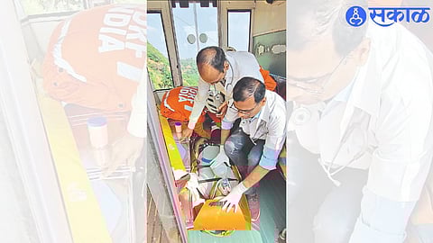 वणी : श्रीक्षेत्र सप्तशृंगी गडावर भविष्यात भूकंपाच्या धक्क्याने, नैसर्गिक बदलांमुळे फनिक्यूलर रोप वे ट्रॉलीवर दरड आल्यास किंवा अन्य कारणांंनी ट्रॉलीस आग लागली, तर ट्रॉली व परिसरात अडकलेल्या भाविकांची सुटका कशी करता येईल, यासाठी नाशिक जिल्हा आपत्ती व्यवस्थापनाकडून मॉकड्रील करण्यात आले. (Mockdrill from Nashik District Disaster Management Saptshringi Gad devotees experienced breathtaking demonstrations News)