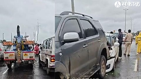 बुधवार ता.२४ रोजी दुपारी दोन ते तीन वाजेच्या सुमारास आडगाव कडून मुंबईकडे जाणाऱ्या चार चारचाकी वाहनांचा सिनेस्टाईल अपघात झाला. यात टाटा सफारी गाडीवर फॉर्च्युनर , फॉर्च्युनर गाडीवर स्विफ्ट, स्विफ्टवर महिंद्रा हल्क ही गाडी चढलेली दिसून येत आहे. (latest Marathi news)