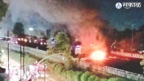 मुंबईच्या दिशेने उड्डाण पुलावरून जाणारा ट्रक क्रमांक (युपी७५ एटी ९३९३) जाताना सायंकाळी ७:३० वाजेच्या सुमारास लेखानगर भागात अचानक ट्रकच्या पाठीमागील टायरला आग लागली आणि काही वेळातच ट्रकची मागील बाजू पूर्णतः जळू लागली. ट्रकला लागलेली आग इतकी भीषण होती की, आजूबाजूला तब्बल पाचशे ते सहाशे मीटर लांबच लांब वाहनांच्या रांगा लागल्या होत्या. (Latest Marathi News)