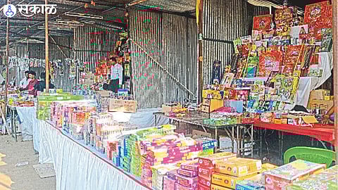 जुने नाशिक : दिवाळीनिमित्ताने फटाक्यांची बाजारपेठ सजली आहे. विविध प्रकारचे फटाके बाजारात विक्री उपलब्ध झालेले आहे. टिटो फटाक्यासह मॅजिक बझ लढ, आणि हॅन्ड शॉट प्रथमच बाजारात विक्रीस दाखल झाले आहे. दिवाळी म्हटले की फटाक्यांची आतषबाजी हे समीकरणच झाले आहे. लहानपासून तर मोठ्यांपर्यंत सर्वांना फटाकेचे आकर्षण असते. दिपावलीनिमित्ताने विविध प्रकारचे लहान मोठे फटाके बाजारात दाखल झाले आहे. (market was decorated with various firecrackers on occasion of Diwali festival )