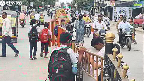 पिंपळगाव बसवंत : शाळा भरण्याची अन सुटण्याची वेळ म्हणजे रस्त्यावर वाहतूक कोंडीचा फास घट्ट झालेला दिसतो. मात्र, ही कोंडी अनेकांच्या अंगवळणी पडल्याने कोणी त्यावर ‘ब्र’ शब्द काढण्यास तयार होत नाही. पिंपळगाव बसवंत शहरातील शाळांसमोर वाहतूक कोंडी नित्याचीच बाब बनली आहे. विद्यार्थ्यांना जीव मुठीत धरून रस्ता ओलांडावा लागत आहे. कोंडीतून वाट काढताना सायकलवरून किंवा पायी जाणाऱ्या विद्यार्थ्यांसाठी ते दिव्य ठरावे, अशी स्थिती असते. एखादा अनर्थ घडण्यापूर्वी स्थानिक प्रशासन, पोलिस यंत्रणा, शाळा व्यवस्थापन समित्यांनी पुढाकार घेऊन उपाययोजना करण्याची गरज आहे. (Situation of traffic congestion around schools in Pimpalgaon )