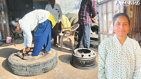 Nashik Women Inspirational Story : आयुष्यात कधी-कधी असा प्रसंग येतो की सारे आयुष्यच पालापाचोळ्यासारखे विस्कळित होते. चहूबाजूंनी संकटांचा फेरा, बिकट आर्थिक स्थितीमुळे दोन वेळच्या जेवणाची भ्रांत, त्यात पदरी दोन मुले या साऱ्या संकटांमुळे अनेक जण खचून जातात. उभे राहण्यासाठी त्यांची धडपड कुठेतरी कमी पडते अन सारेच संपते. असाच प्रसंग आलेल्या, सात वर्षांची असताना आईचे छत्र हरपलं, लग्न होऊन दोन मुलांना वाढविताना पतीचे अकाली निधन यातून सावरत पुरुषांची मक्तेदारी असलेल्या चारचाकीच्या टायरचे पंक्चर काढण्याचे पतीचे काम पुढे सुरू ठेवणे साधे काम नाही. (Women Inspirational Story Shattered world healed by puncture repair of four wheeler)