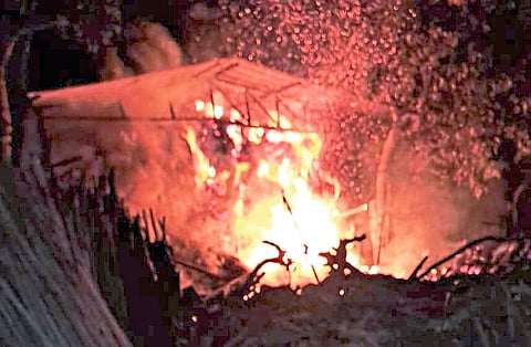 त्याला मध्यरात्री आग लागल्याने सर्व नष्ट होऊन चाऱ्याचा प्रश्न निर्माण झाला आहे. खेडलेझुंगे (ता. निफाड) येथे भर वस्तीत असलेल्या कैलास माधव घोटेकर यांच्या मालकीच्या गट नंबर ४५२-अ मध्ये राहते घर आणि जनवारांचा गोठा आहे. त्यांनी पशुधनासाठी साठवून ठेवलेल्या भुशाच्या छपराला व गायीच्या गोठ्याला मध्यरात्रीनंतर २ ते ३ वाजेच्या सुमारास आग लागून अंदाजे २ ते ३ लाखांचे नुकसान झाले आहे.