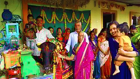 चांदोरी (जि.नाशिक) : पहिलं बाळंतपण म्हटलं की सगळं घर डोहाळं जेवणाची तयारी करायला घेतं. पहिल्या बाळंतपणाला गर्भवतीचं डोहाळे जेवण करणं यात तसं काही नवं नाही. पण कधी तुम्ही एखाद्या गाईचं डोहाळं जेवण घातल्याचं ऐकलं किंवा पाहिलं आहे का ? हो हे खरं आहे. निफाड तालुक्यातील गोंडेगाव येथील दाते कुटुंबाने आपल्या लाडक्या गाईचं डोहाळं जेवण घालून संपूर्ण गावासमोर आदर्श उभा केला आहे. (pregnent-cow-baby-shower-ceremony-nashik-marathi-news)